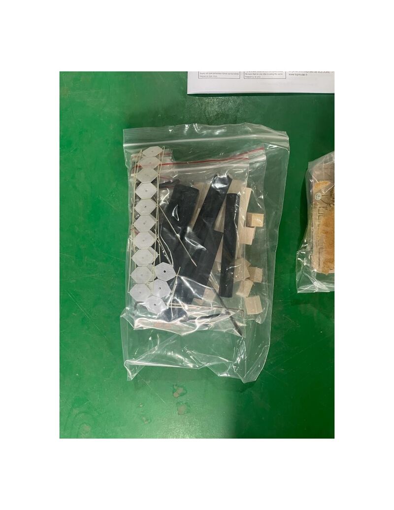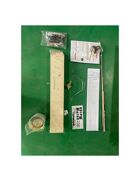 - Maßstäbliches Zubehör (Pilotenbüste, Maschinengewehr, Motorattrappe, Kabinenstreben, Abspannseile, alte Räder, Steuerhörner, Schubstangen, Gabelköpfe, Scharniere, Klettbänder, Schrauben usw.)