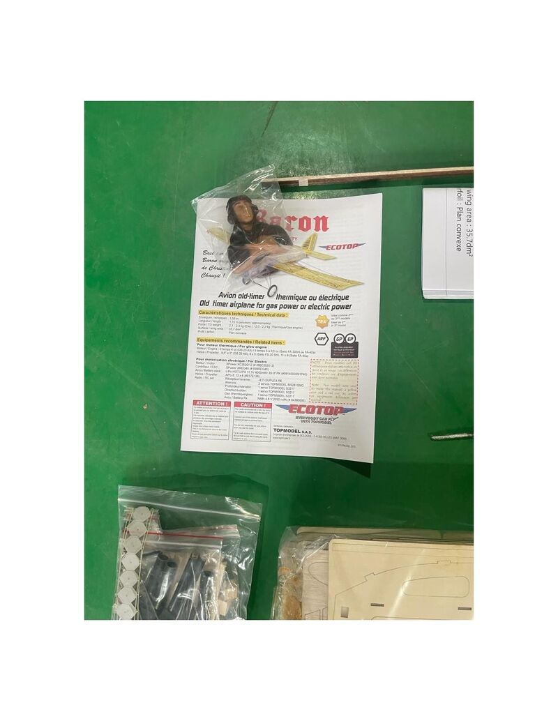 Der Ecotop Baron-Bausatz ist eine originalgetreue Nachbildung des legendären RC-Flugzeugs, das von Christian Chauzit in den 1960er Jahren entworfen wurde. Dieses Modell ist ein echter Klassiker in der Welt des Flugmodellbaus und die perfekte Wahl für Anfänger, die ihre ersten Schritte in der RC-Fliegerei machen wollen, sowie für erfahrene Piloten, die den Nervenkitzel des berühmten "Coupe des Barons" genießen wollen.