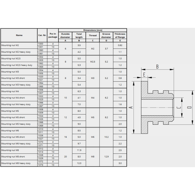MP JET - Aluminium Befestigungsmutter M4 (10 Stück)