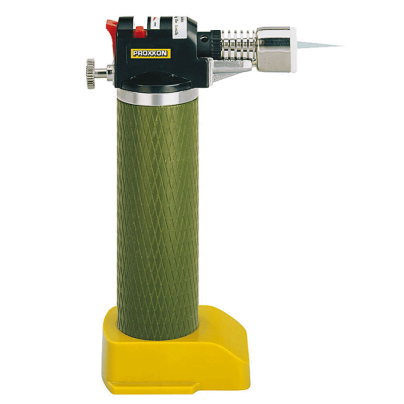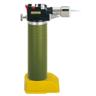 Individually controllable gas and air supply. Super fine flame shape with temperature attaining 1,200 °C. Ideal for precision work. Fitted with an electronic piezo crystal lighter.