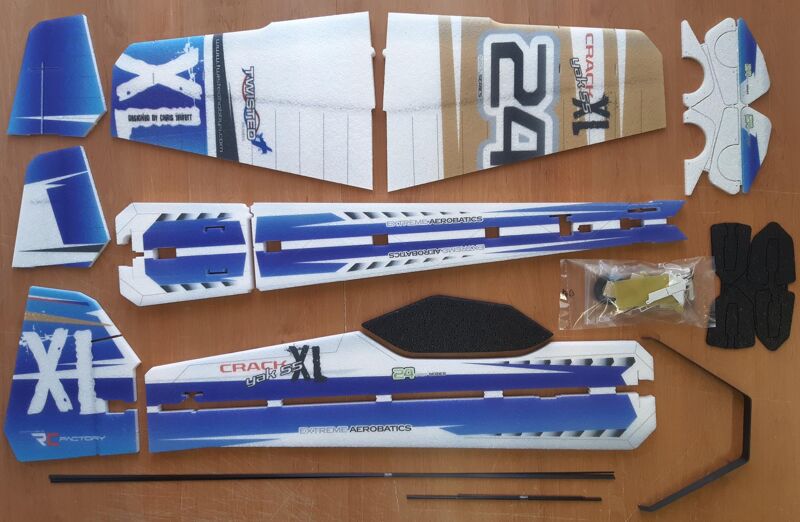 Empfohlene Ausrüstungssätze (Motor, Servos, ESC, Propeller, Akkus) finden Sie unten unter "Für den Betrieb erforderlich".
