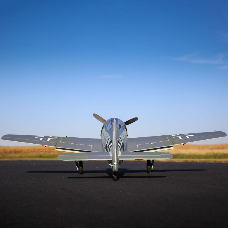 The wide-spaced main gear feature factory-installed electric retracts equipped with durable metal components and shock-absorbing struts that make it possible to fly from a wider variety of surfaces including paved runways and grass. And unlike most other Fw 190 models, the scale-like length struts offer a more authentic scale look and experience.