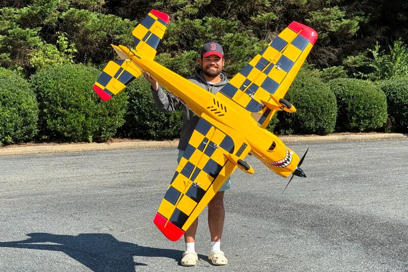 Built with the pilot in mind, the Chipmunk features extensive pre-fabrication: pre-hinged, gap-sealed surfaces, a quick-build tail system, pre-vented cowling for excellent cooling, and countless time-saving details. Constructed from premium laser-cut balsa and ply reinforced with carbon fiber, it spans a massive 80 inches yet weighs only 9.5 lbs without Lipo – around 11–11.5 lbs with a 6S Lipo (typically 5,000–6,000 mAh). It literally feels like a feather in the air.