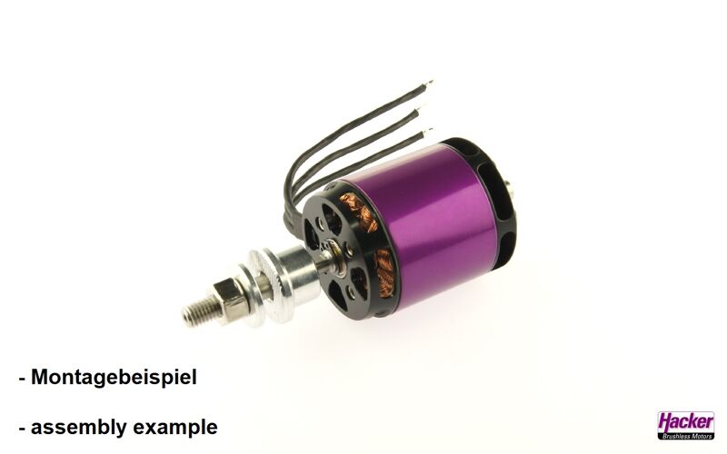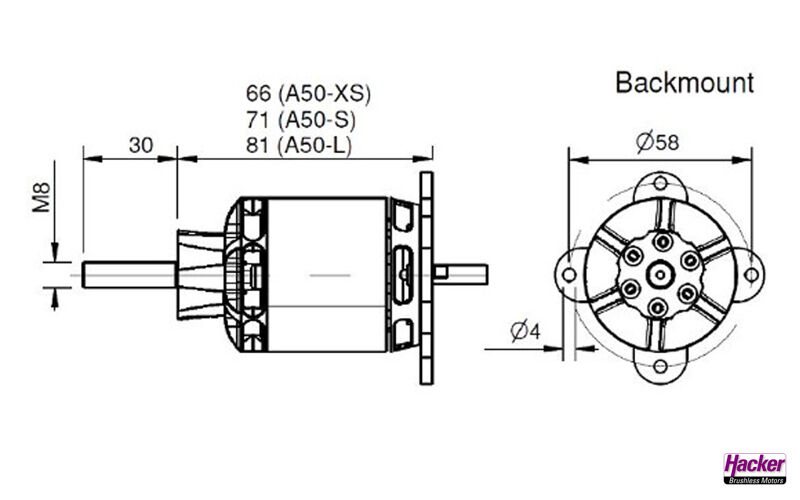 The Hacker A50-V4 motors are 14-pole external rotor motors whose efficiency has been further improved through continuous development. The A50-V4 series has a new rear end shield with fan, which enables even more efficient internal cooling of the entire motor. The different lengths and windings allow an exact adaptation to the model and allow a power range up to 2000W.
