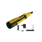 Quick electrically supported screwing and precise tightening by hand up to 5Nm.Cordless screwdriver for 1/4" standard bits. Ideal for threaded bolts (e.g. metric threads acc. to ISO). Electric drive for quick, effortless screwing. Final, precise fastening "by hand" up to 5 Nm due to self-locking mechanism. Bolt and bit are safely held by a strong magnet. A tool change from the cordless screwdriver to a conventional one is not necessary. The battery with 2Ah capacity provides enough energy also for bigger projects and longer operation. Including 12 standard bits of industrial quality (3 in extra-long version).
