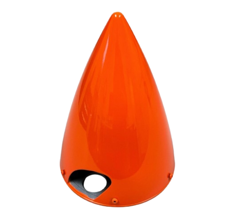 Roue en fibre de carbone peinte en orange avec plaque arrière en aluminium.