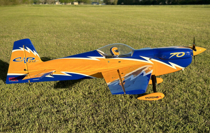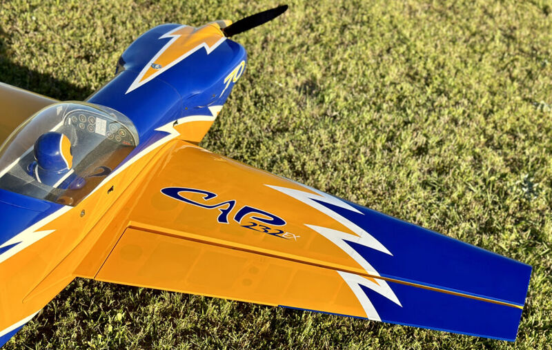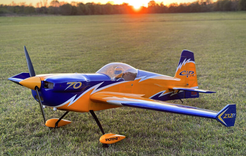 The Mudry Cap 232EX rose to fame as an iconic full scale aerobatic airplane flown in aerobatic competitions in the late 1990’s. Designed by World Champion Quique Somenzini, the Cap 232EX 70cc redefines what a Cap 232 can be as a model airplane: an absolute aerobatic monster, with full-scale presence, all while addressing the undesirable behaviors previously associated with Cap 232’s. Beyond its impressive show-time presence, the Cap 232EX 70cc offers a wide flight envelope which excels at high energy XA maneuvers, 3D slow and stable characteristics, and precision flight.