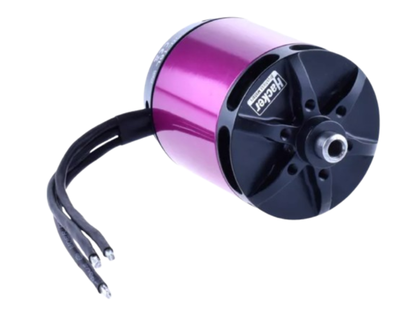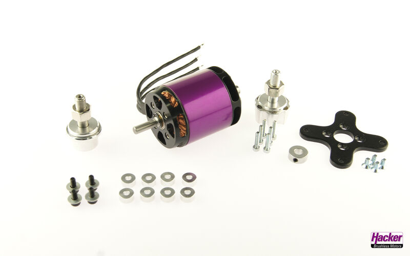The Hacker A50-V4 motors are 14-pole external rotor motors whose efficiency has been further improved through continuous development. The A50-V4 series has a new rear end shield with fan, which enables even more efficient internal cooling of the entire motor. The different lengths and windings allow an exact adaptation to the model and allow a power range up to 2000W.