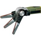 Head of die-cast aluminium for high stability and precise ball bearing fitting. Main housing made of glass-fibre reinforced POLYAMIDE. Variable (full wave) electronic speed control. Complete with 2 off 80 and 2 off 180 grit belts. Safely stored in an attractive and extremely stable case made from high-grade polypropylene.