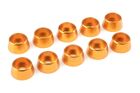 High quality precision CNC machined aluminium 6065 T6 washer for M5 socket head type screws. Outer diameter 12mm. Gold anodised color. Blister packed 10 pcs