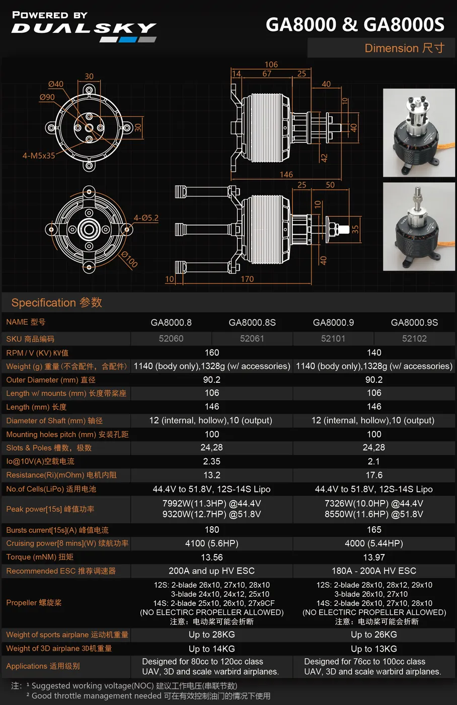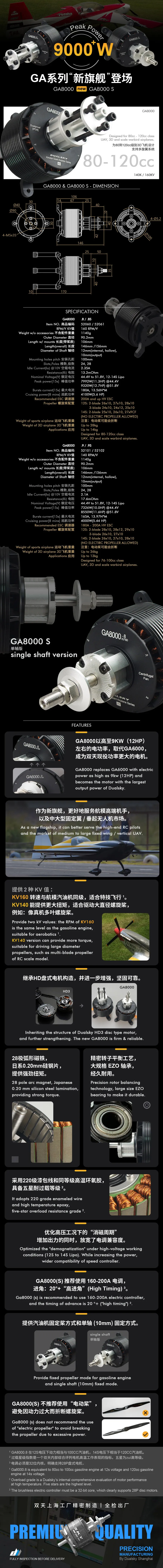 Dualsky – GA8000.9S Enkele As 76‑100CC 140KV 8550W Borstelloze Motor