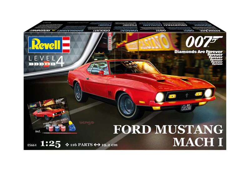 Las Vegas, 1971: De Ford Mustang Mach I racet door de glinsterende neonstraten van de Strip. Achter het stuur: James Bond zelf, in een van de spannendste achtervolgingen uit de filmgeschiedenis. Met deze exclusieve modelkit kun je dat legendarische moment thuis tot leven brengen. Met 129 minutieus gedetailleerde onderdelen kun je met deze replica op schaal 1:25 niet alleen een model bouwen, maar ook een stukje filmgeschiedenis.